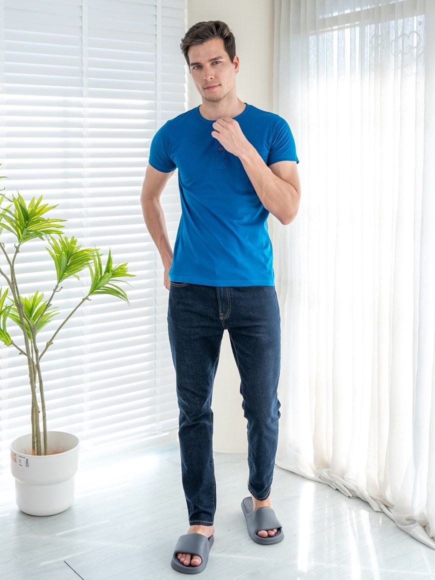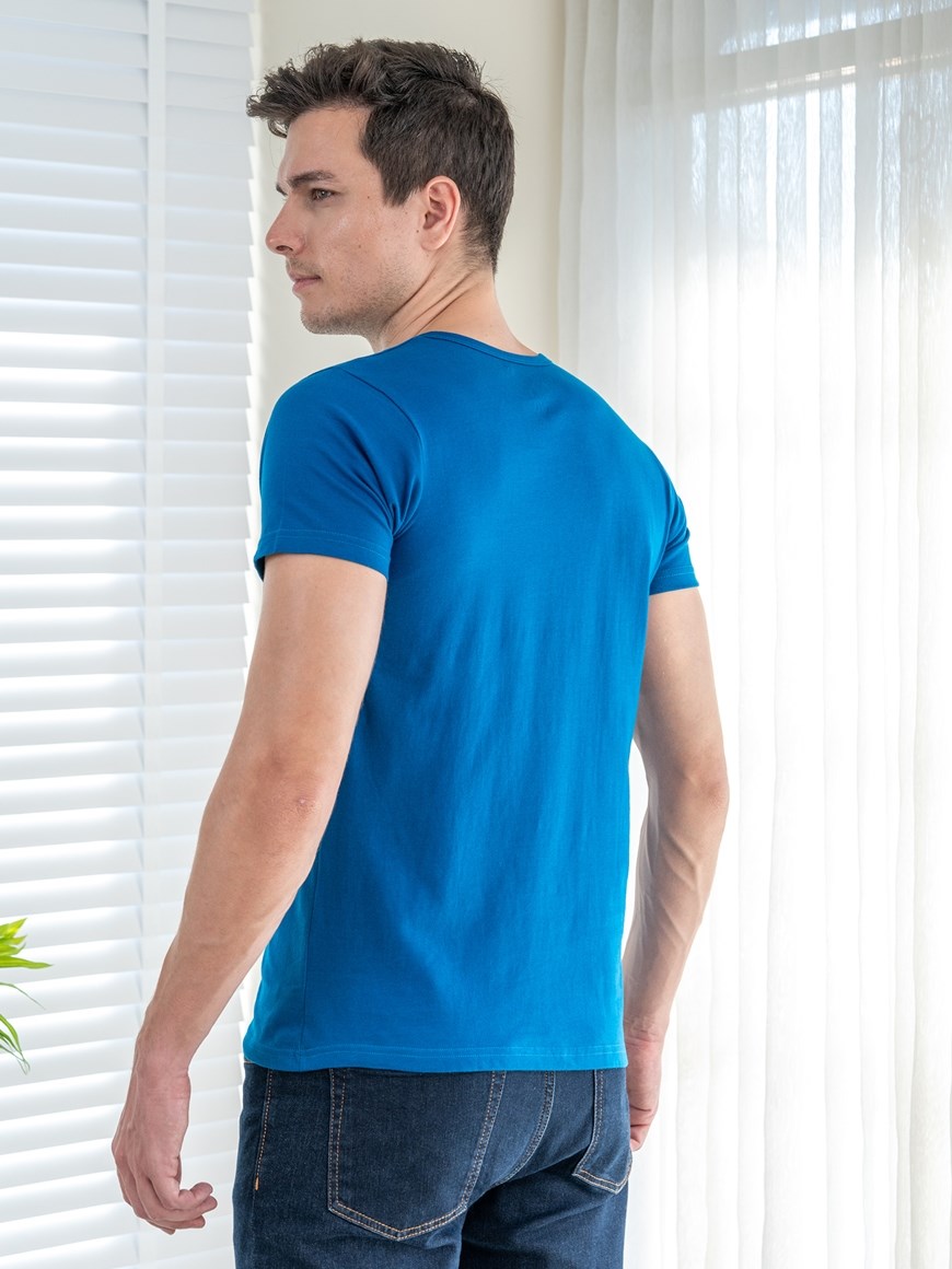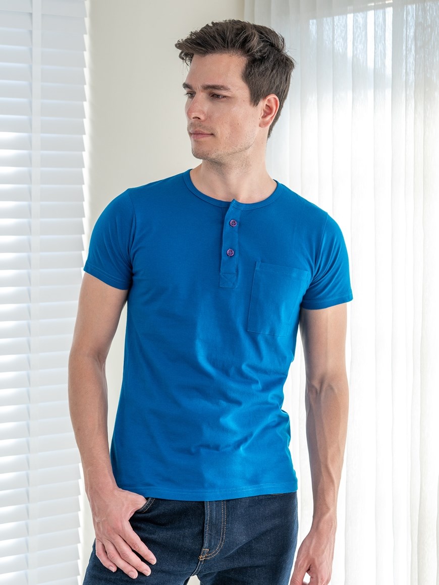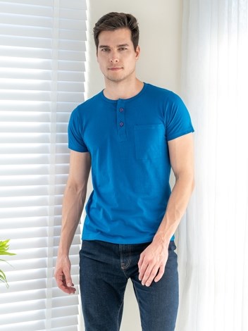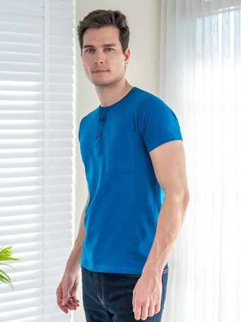 Button Tshirt Super Soft Combed Cotton Half Sleeve T-Shirt - Teal Blue