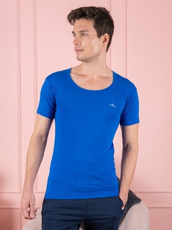 Color RNS Soft Pure 100% Combed Cotton Round Neck Half Sleeve Vest - Light Blue