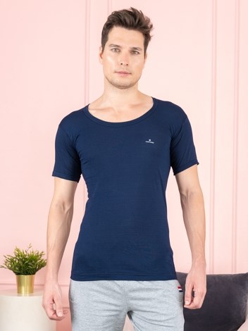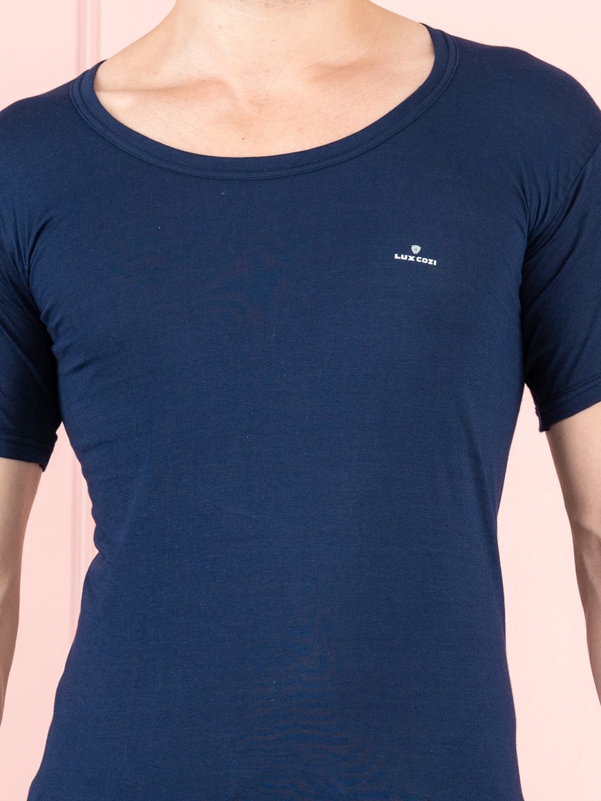 Color RNS Soft Pure 100% Combed Cotton Round Neck Half Sleeve Vest - Navy