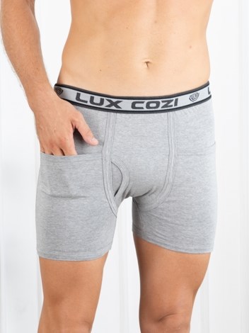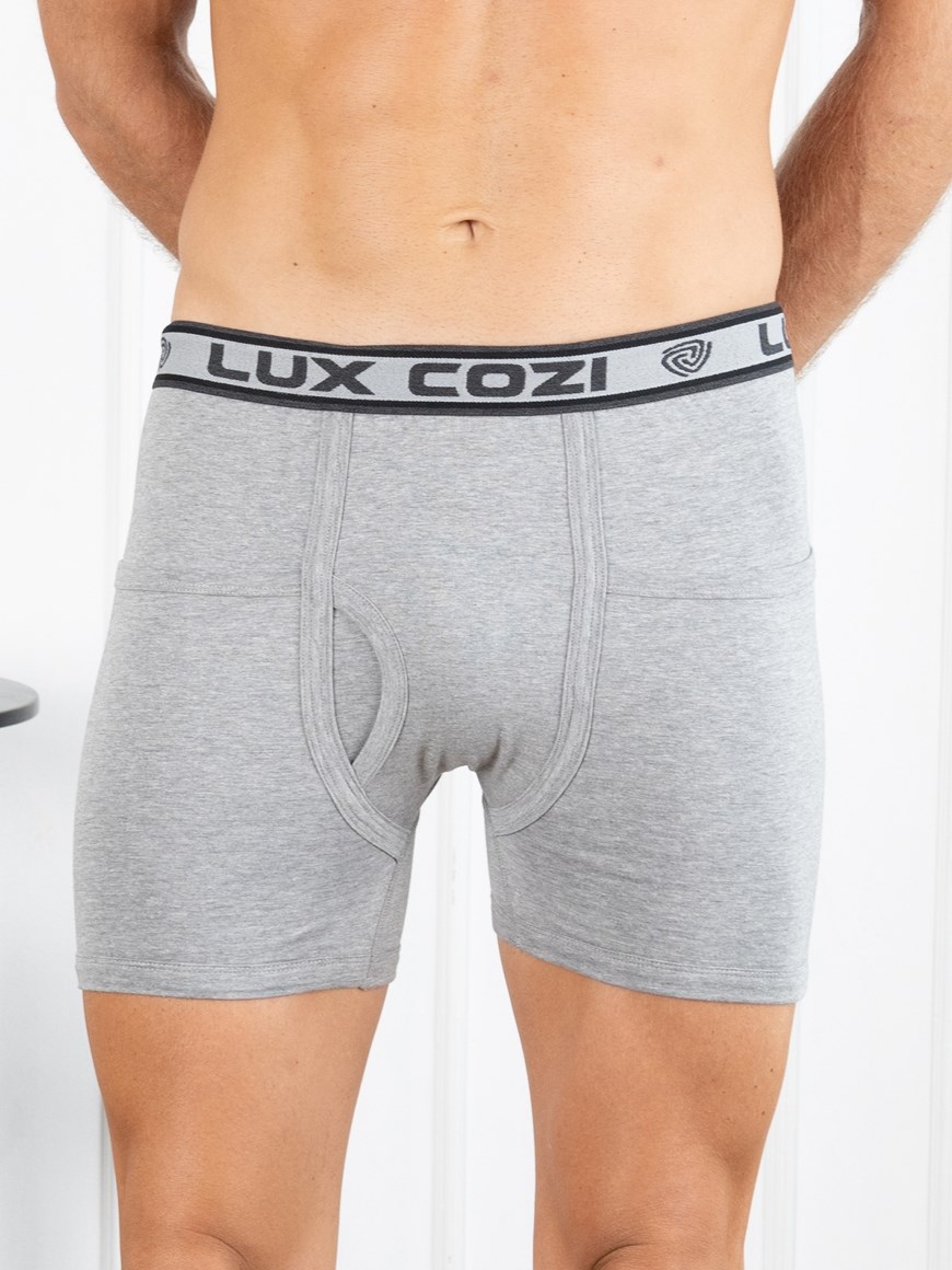 Cozi Long Pocket Solid Premium Combed Cotton Trunk with Ultra Soft Waistband - Grey Melange