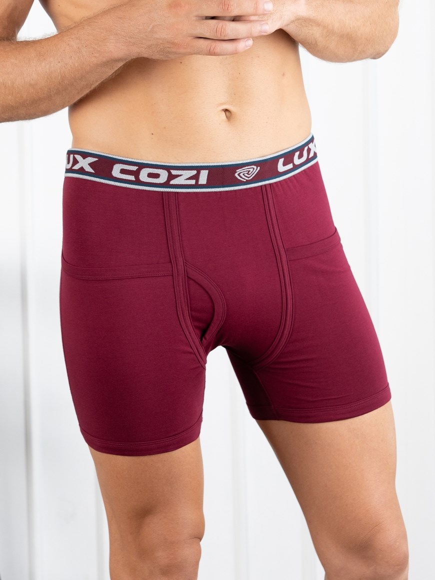 Cozi Long Pocket Solid Premium Combed Cotton Trunk with Ultra Soft Waistband - Maroon