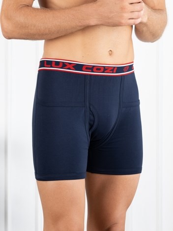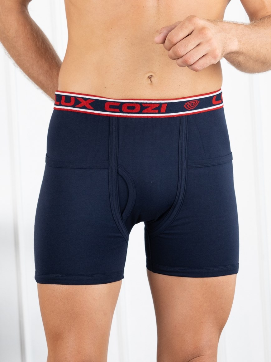 Cozi Long Pocket Solid Premium Combed Cotton Trunk with Ultra Soft Waistband - Navy