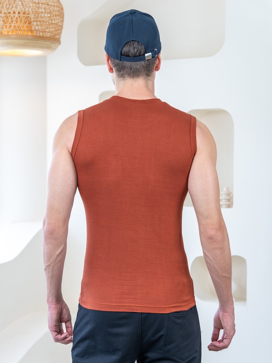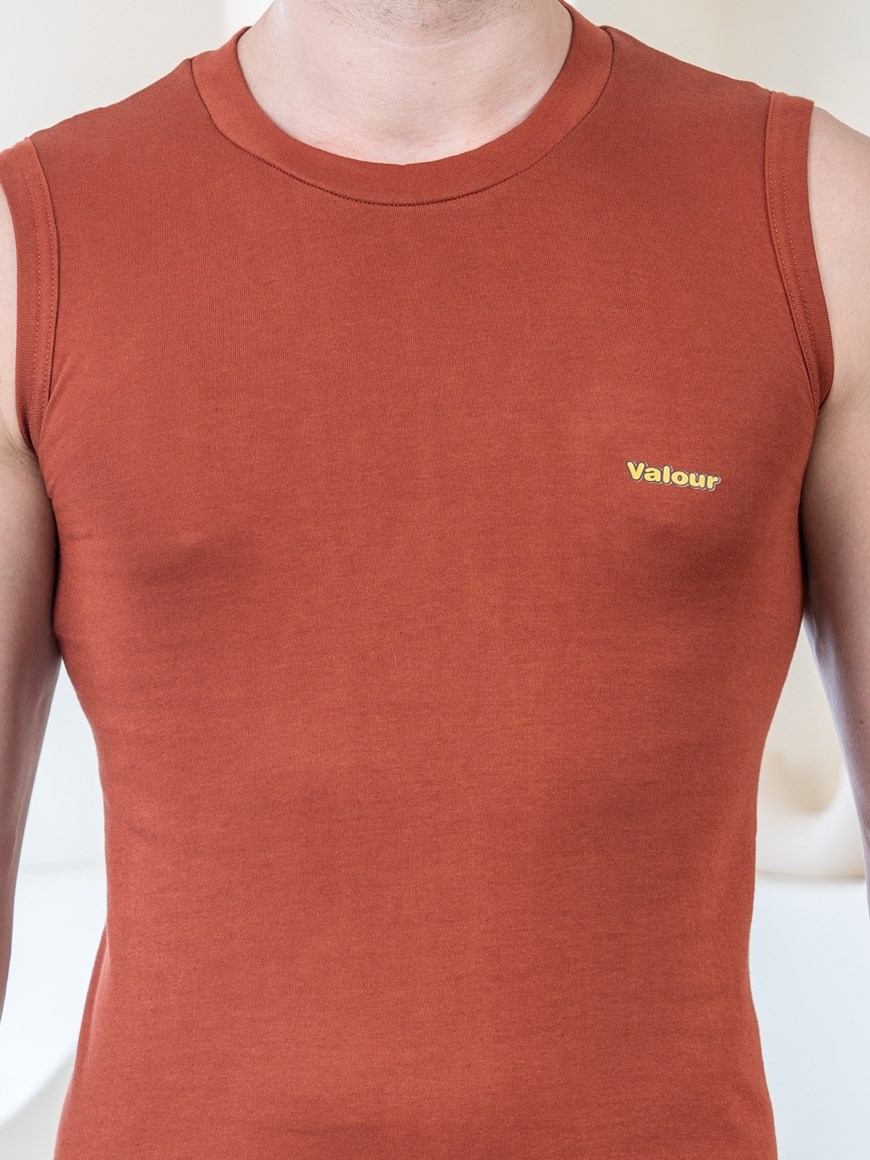 Valour Mega Soft Pure 100% Combed Cotton Round Neck Sleeveless Vest - Brown
