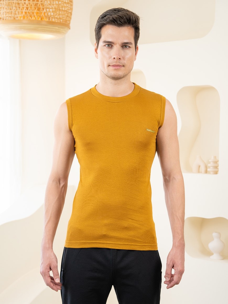Valour Mega Soft Pure 100% Combed Cotton Round Neck Sleeveless Vest - Mustard