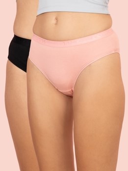 Touch panty Soft Pure 100% Combed Cotton Mid waist hipster Panty - Baby Pink and Black (Pack of 2)