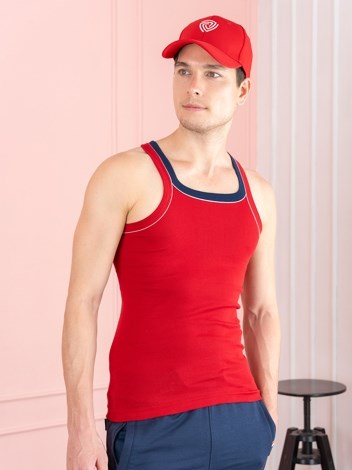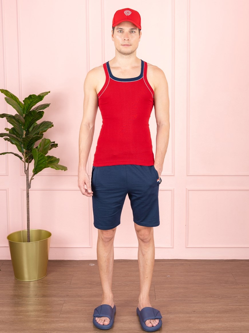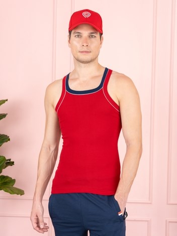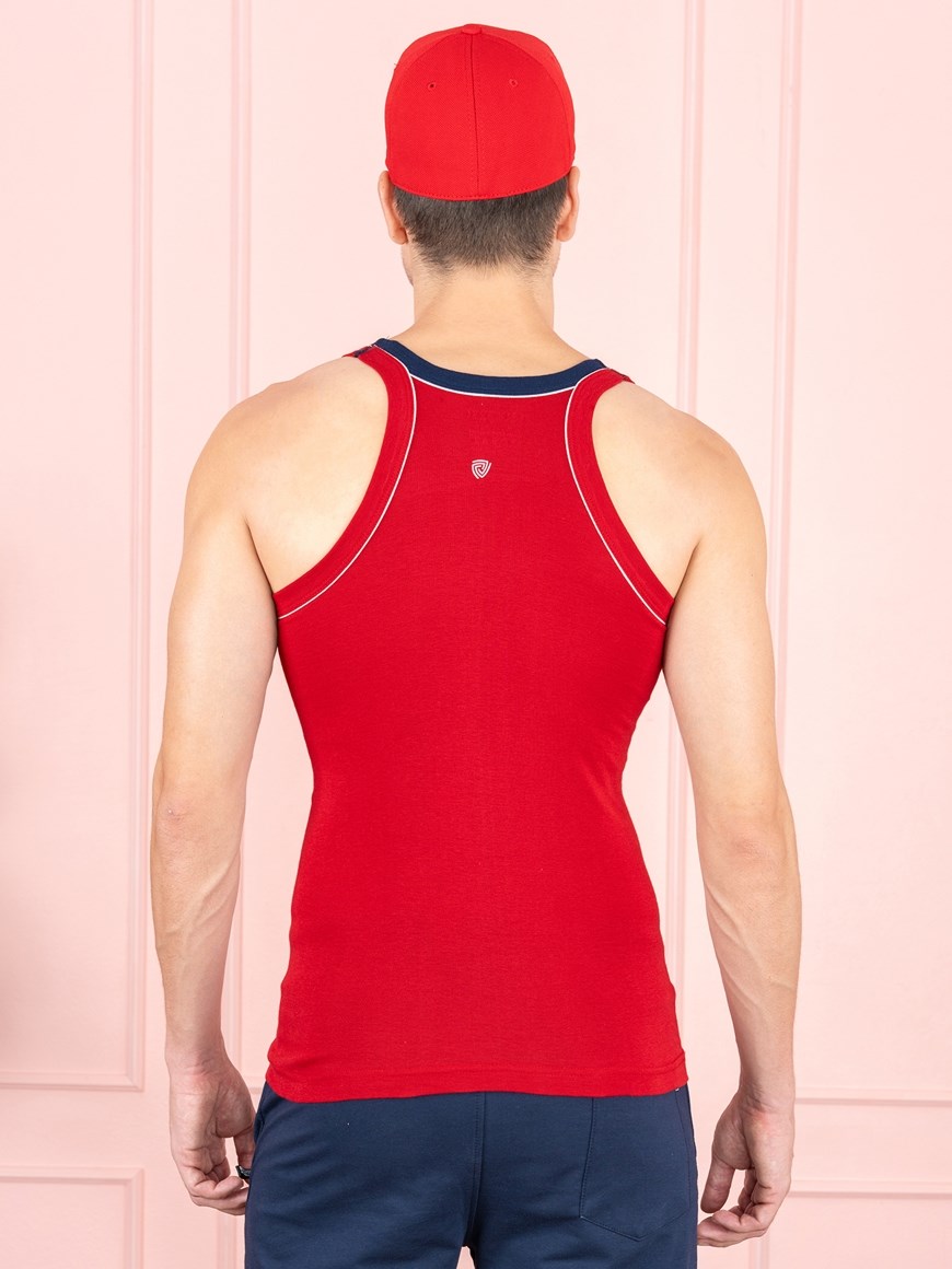 Xylo 666 RN Soft Pure 100% Combed Cotton Round Neck Sleeveless Gym Vest - Red