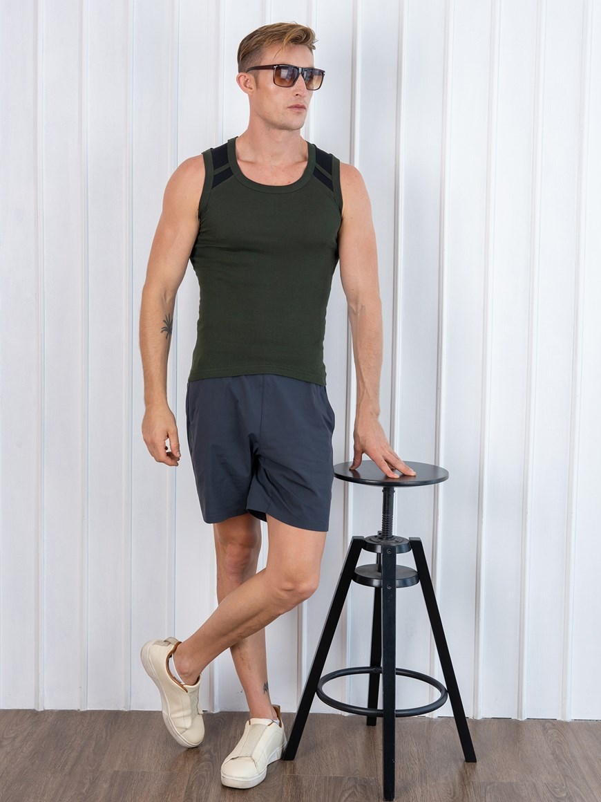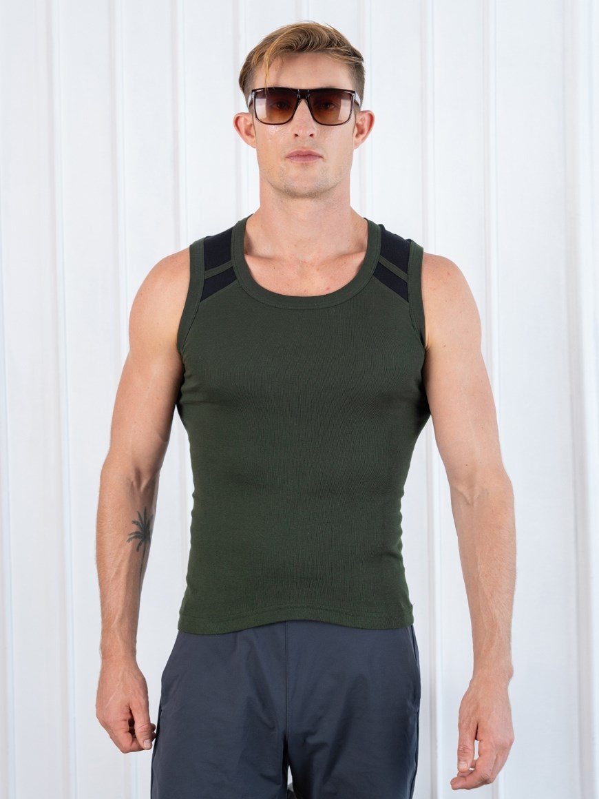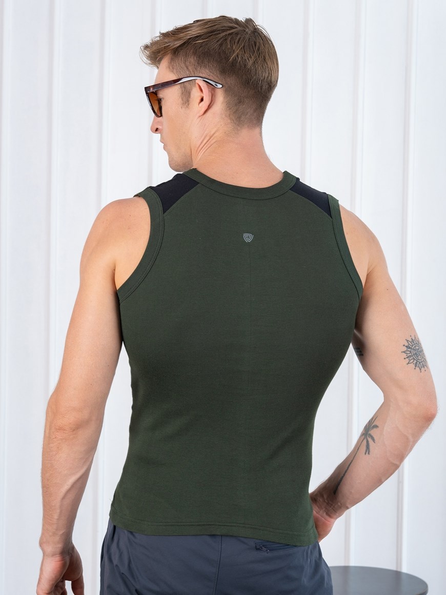 Xylo 888 RN Soft Pure 100% Combed Cotton Round Neck Sleeveless Gym Vest - Olive